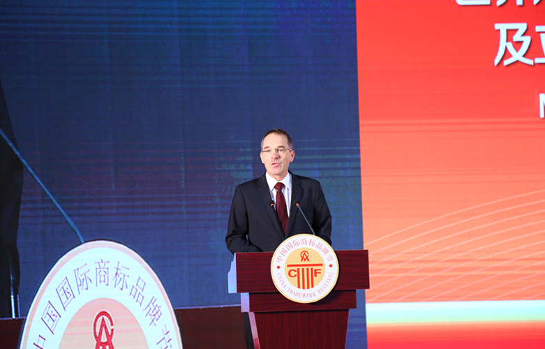 世界知识产权组织马德里注册部主任Marcus Hopperger代表世界知识产权组织副总干事王彬颖女士致辞