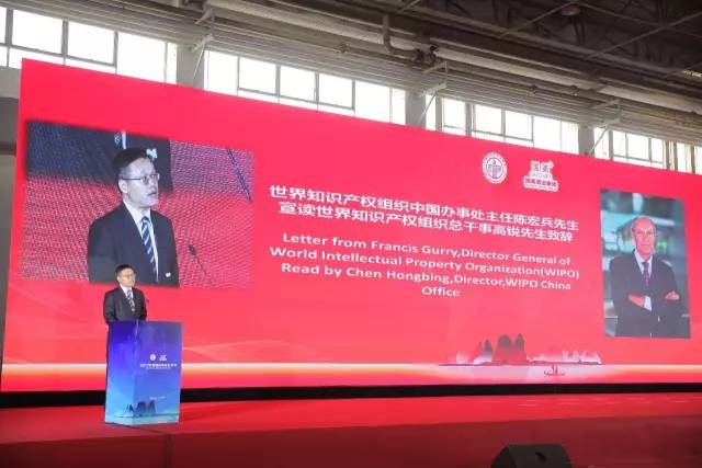 世界知识产权组织中国办事处主任陈宏兵宣读总干事弗朗西斯·高瑞贺信