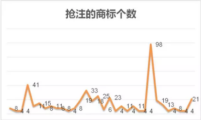 在105家有被抢注记录的知名企业中,平均到每家被抢注商标有6.4件;其中,存在抢注商标数量最多的为维沃移动通信有限公司,有抢注商标98件;其次为北汽福田汽车股份有限公司,有抢注商标41件;第三为湖南中烟工业有限责任公司,有抢注商标33件。