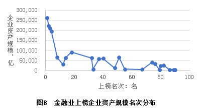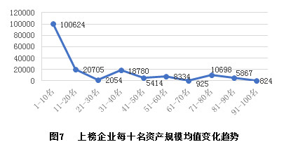 另外,与人们一般印象不同,除前十名品牌所属企业的资产规模较大外,第11至100名的企业规模差异并不明显,其排名与资产规模相关性较低。一方面意味着行业龙头规模效应与商标品牌价值的提升相互促进,另一方面企业可以通过品牌管理,确定优势、发挥所长,提升品牌价值。金融、制造业等主要行业也显示出相似特征。