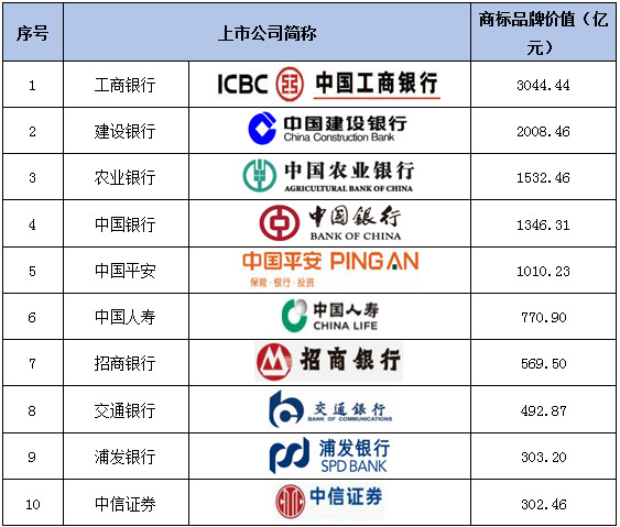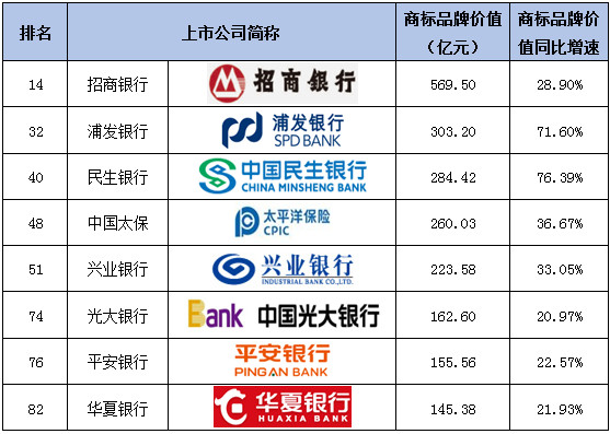 3. 食品、银行等行业商标品牌价值增长迅速