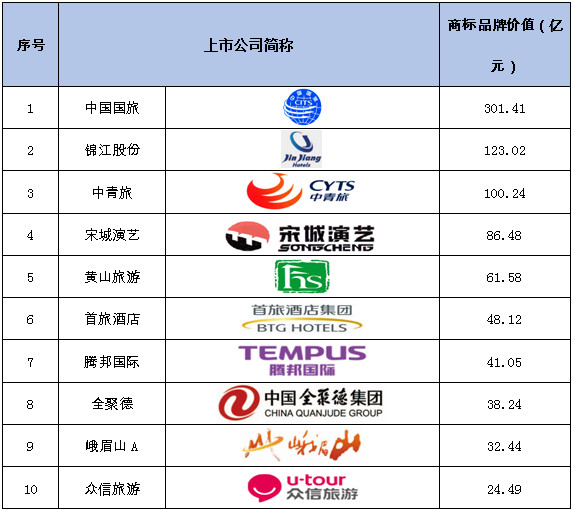 2017沪深上市公司商标品牌价值排行榜休闲旅游分榜包括旅游业、酒店业、餐饮业等相关服务业,十家上榜企业商标品牌价值总额共计为857.08亿元,较2016榜单基本保持稳定。其中,全聚德商标品牌价值增长速度最快,同比增长20.86%。