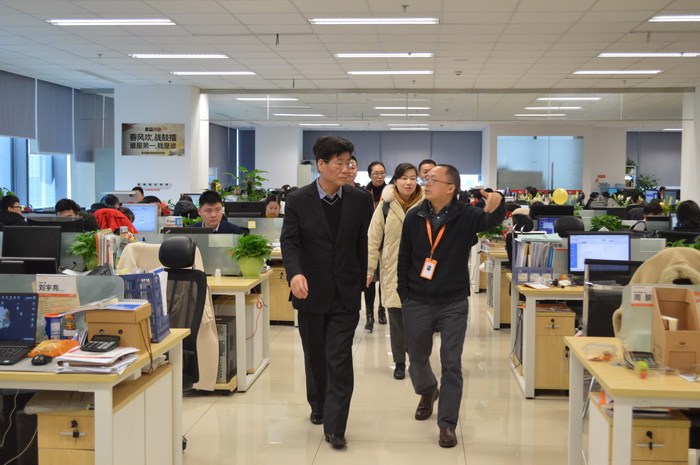 (超凡董事长母洪陪同马夫会长参观超凡办公区)