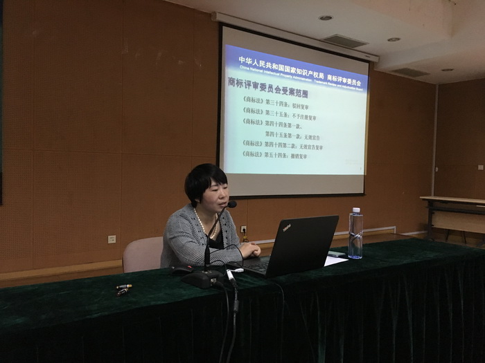 国家知识产权局商标局评审三处副调研员刘胤颖在授课