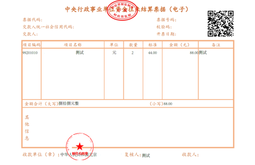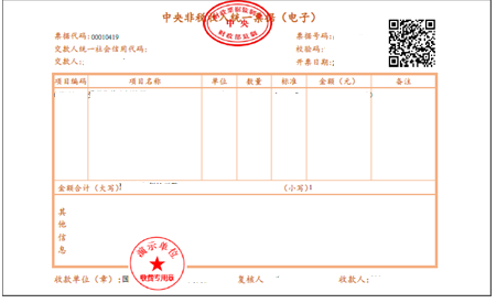 《中央非税收入统一票据》(电子),式样如下: