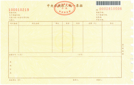 《中央非税收入统一票据》(机打),式样如下: