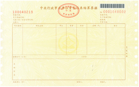 《中央行政事业单位资金往来结算票据》(机打),式样如下: