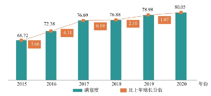 附图 2015-2020年全国(不含港澳台地区)全国知识产权保护社会满意度