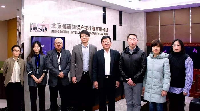 韩明星、郭鸿禧对张豫宁一行的到来表示欢迎和感谢。他们介绍了公司的成长历史:铭硕成立于2003年,创始人韩明星是我国最早取得资格的专利代理人之一,公司2005年加入中华商标协会,经过多年不懈努力,目前已发展成为集国内外专利、商标、著作权等知识产权的申请与确权、咨询与服务、诉讼与维权、战略服务等业务于一体的综合性知识产权服务机构,在沈阳、成都等地设有分公司。铭硕以“信用与实力为平台、始终站在客户立场上提供服务”为经营理念,先后为三星、便利蜂等大型跨国公司提供专业的知识产权服务,2019年被纳入《北京市具有较强国际知识产权服务能力的本土机构名录》,2021年被北京市专利代理协会评为“北京市5A级专利代理机构”。