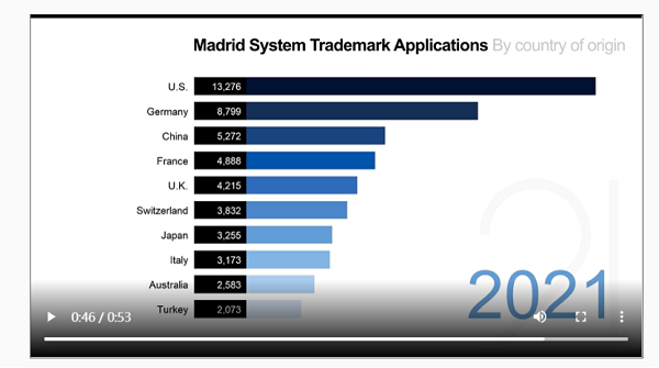 马德里体系最新统计数据显示,2021 年马德里国际商标申请量激增14.4%。WIPO 的国际商标体系共提交 73,100 件申请,实现了自 2005 年以来的最快增长。