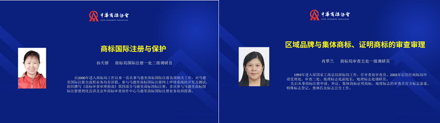 2021年11月,国家知识产权局公布了《商标审查审理指南(2021)》(以下简称《指南》),并已于2022年1月1日期实施,在商标领域引起了广泛热议和关注。经听取会员的学习需求和建议,在国家知识产权局商标局的指导和大力支持下,2022年5月18日至6月29日中华商标协会采取线上直播的方式先后举办了7期《指南》系列解读培训班,旨在普及商标授权确权基本知识,指导市场主体提升知识产权意识和能力,提高商标代理机构服务水平,助力商标审查提质增效。本系列培训邀请到了国家知识产权局商标局相关处室15名资深审查专家对《指南》进行了全方位解读,直播观看人次总计近10万。本系列培训班由南京优注宝信息科技有限公司提供技术支持。
