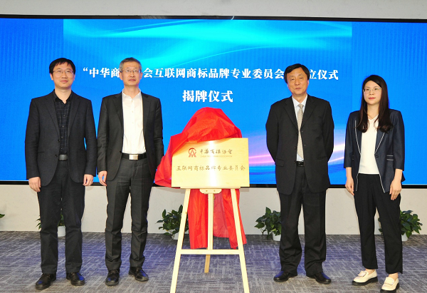 随后,中华商标协会秘书长吴东平、专委会联席执行主任汪泽和邱福恩以及专委会秘书长汪要共同为“中华商标协会互联网商标品牌专业委员会”揭牌。