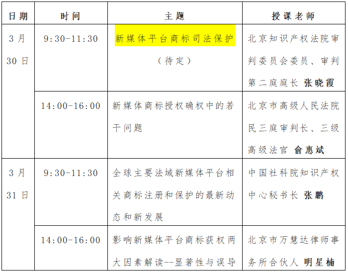 注意:请务必提供参训人员手机号码、电子邮箱,报名成功后,我会将于3月29日9点后统一以短信方式发送培训直播收看链接及密码,群发短信失败的将通过邮箱发送。短信和邮件均未收到“直播链接”的学员(同时请检查垃圾箱),请在3月29日17点前将情况反馈至legal@cta.org.cn。开课当天不再处理未收到链接或未及时报名的相关问题。