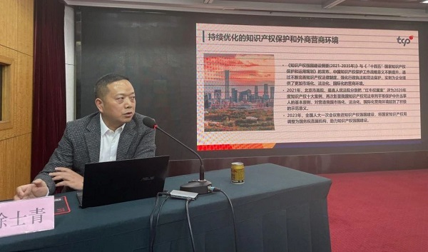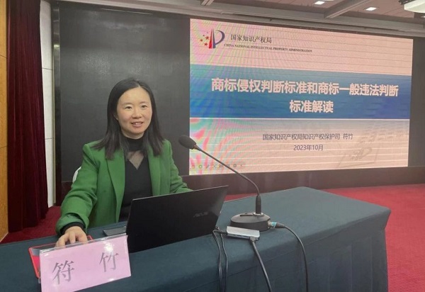 国家知识产权局知识产权保护司执法指导处三级调研员符竹在授课