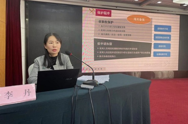 海关总署综合业务司知识产权保护处三级调研员李丹在授课