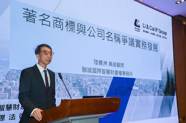 联诚国际智慧财产权事务所高级顾问陆义淋就“著名商标与公司名称争议实务发展”题目进行了分享。