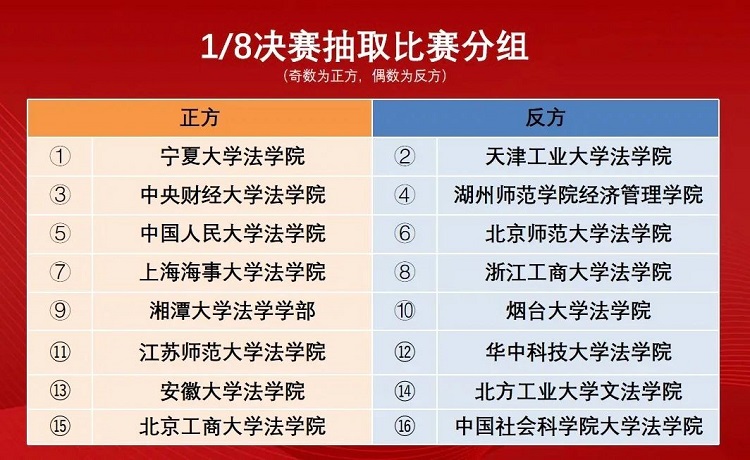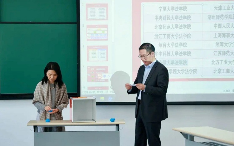 16强争夺赛结束后,竞赛组委会在比赛现场举行了1/8决赛抽签仪式,评委组组长中国市场监管报主任编辑李春和中国外商投资企业协会药研委法务总监邱福恩共同抽签,抽取比赛正反方分组,抽签仪式由北京君策知识产权中心副主任马莉主持。