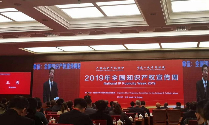 4月24日,2019年全国知识产权宣传周主场活动在京举行。今年全国知识产权宣传周活动的主题是“严格知识产权保护 营造一流营商环境”。国务委员王勇出席宣传周主场活动并作重要讲话。