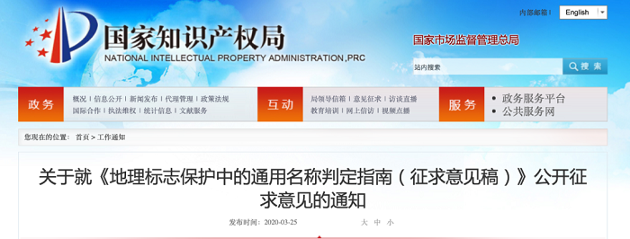 为完善地理标志保护中的通用名称判定等相关制度,我局起草了《地理标志保护中的通用名称判定指南(征求意见稿)》,现予以公开发布,征求各界意见。