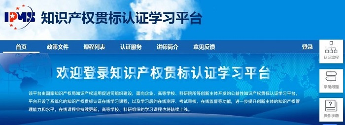 关于全国知识产权贯标认证学习平台上线运行的通知