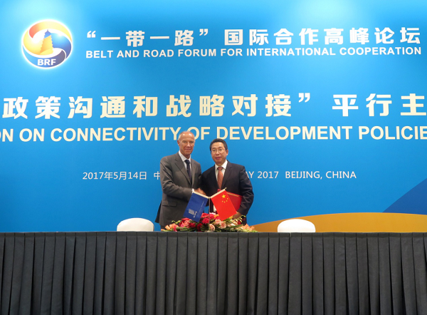 在“一带一路”国际合作高峰论坛期间,中国国家知识产权局局长申长雨(右)和WIPO总干事弗朗西斯·高锐在京共同签署了《中华人民共和国政府和世界知识产权组织加强“一带一路”知识产权合作协议》,这是中国政府与国际组织签署的首个有关“一带一路”知识产权合作的文件。