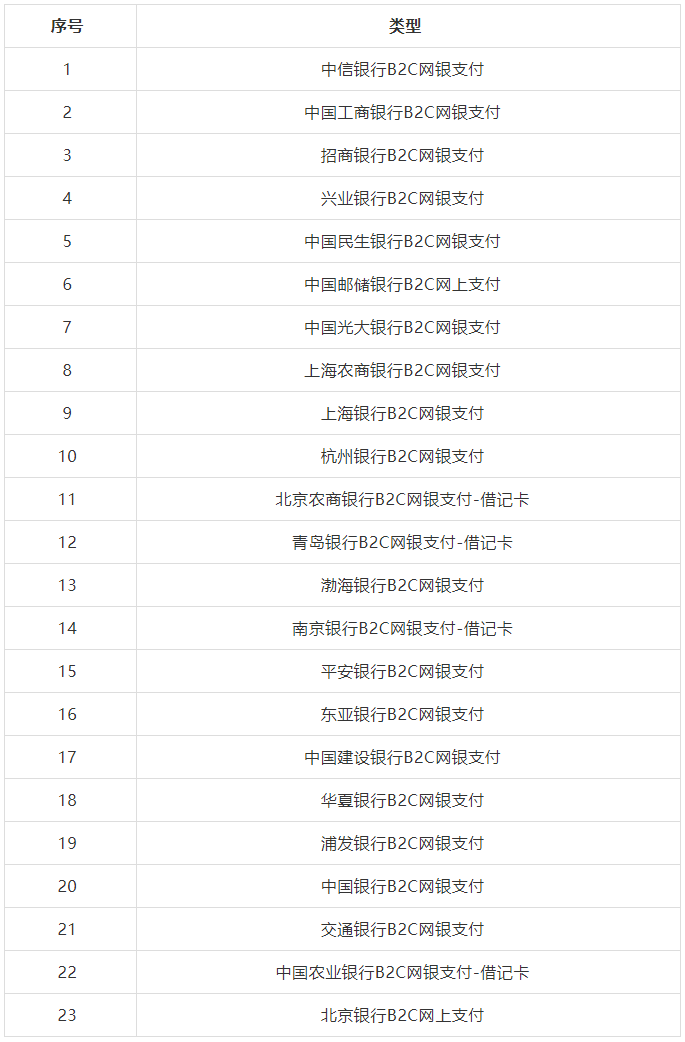 根据上海银联电子支付服务有限公司的通知,自2020年7月11日起对商标网上申请系统中通过个人银行卡网银(B2C)方式缴费的银行名单进行调整,调整后的23家银行名单如下: