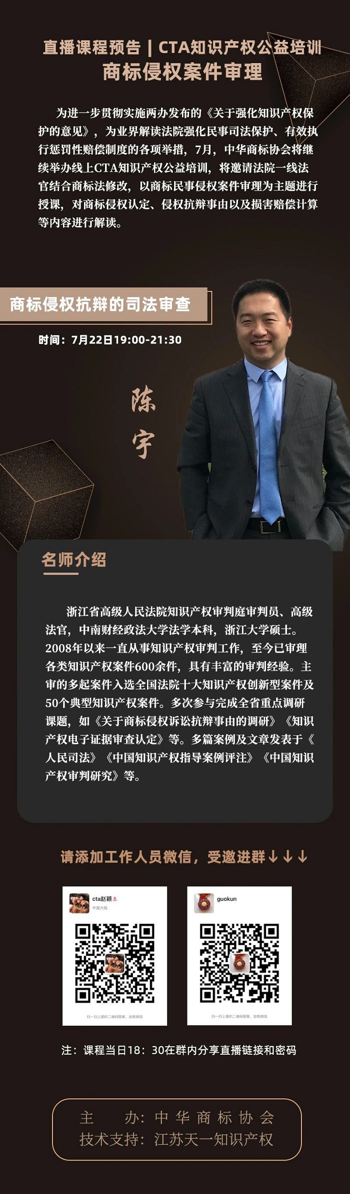 今晚直播预告|CTA知识产权公益培训—商标侵权抗辩的司法审查