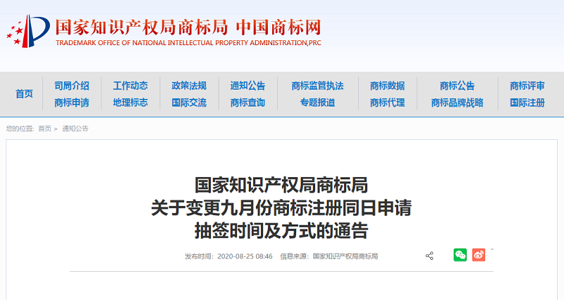 受新冠肺炎疫情影响,国家知识产权局商标局决定变更商标注册同日申请抽签时间,并将抽签方式由线下抽签变更为线上抽签,具体时间安排如下: