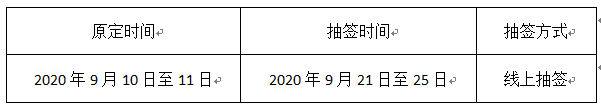 五、抽签时间:2020年9月21日至9月25日每日下午14:00-15:00。抽签人按照抽签日期安排进行抽签。