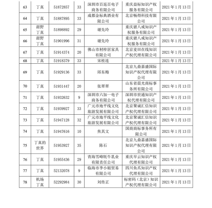 国家知识产权局商标局2月10日发布通告,根据商标法第四条第一款、第十条第一款第(七)项的规定,对第51763155号等13件“丁真”商标注册申请作出驳回决定;根据商标法第十条第一款第(七)项的规定,对第52279255号“丁真”等78件商标注册申请作出驳回决定。