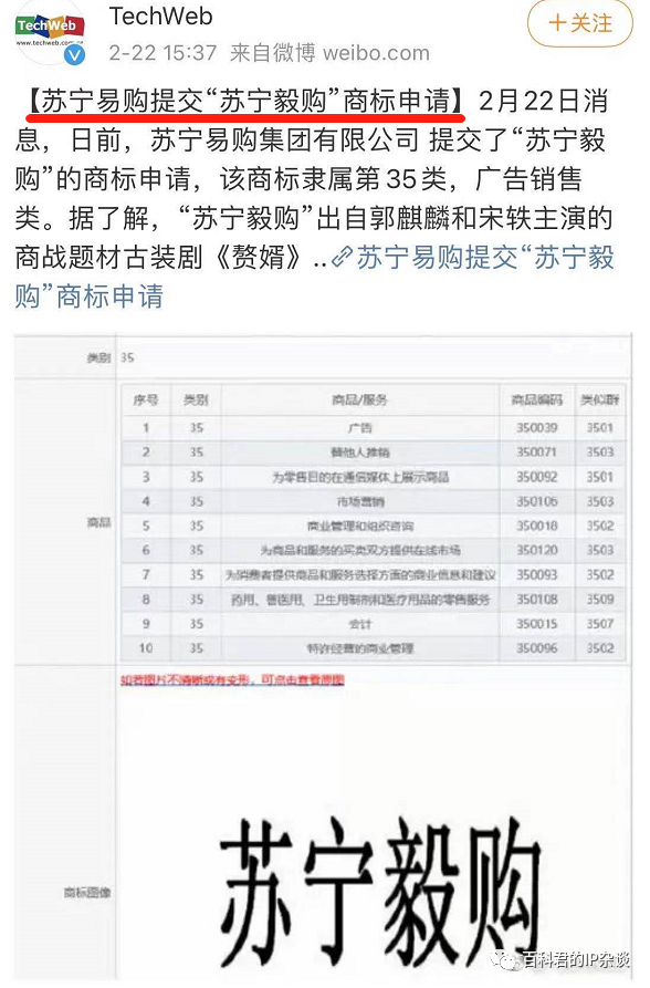 难道是苏宁易购“被迫”营业,不得不抢先申请“苏宁毅购”嘛?以免被他人蹭热点抢注商标嘛?