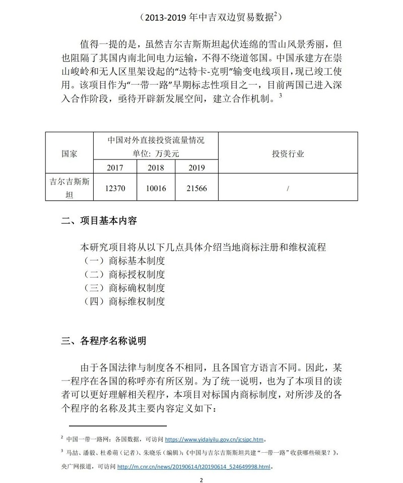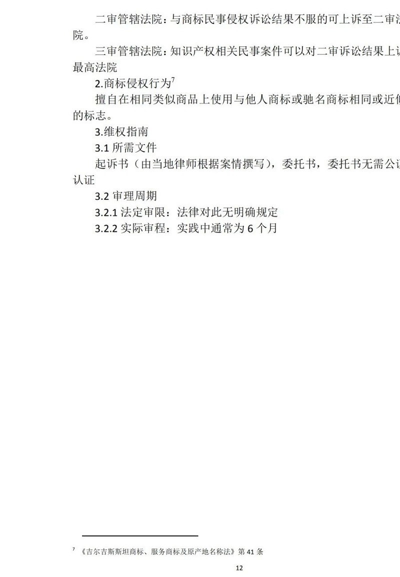 为帮助我国企业了解吉尔吉斯斯坦商标制度,为企业提供维权信息指导,中国商标网发布《“一带一路”主要国家商标注册和维权流程介绍(吉尔吉斯斯坦)》,敬请关注。(注:课题研究数据采集截止到2020年12月31日)