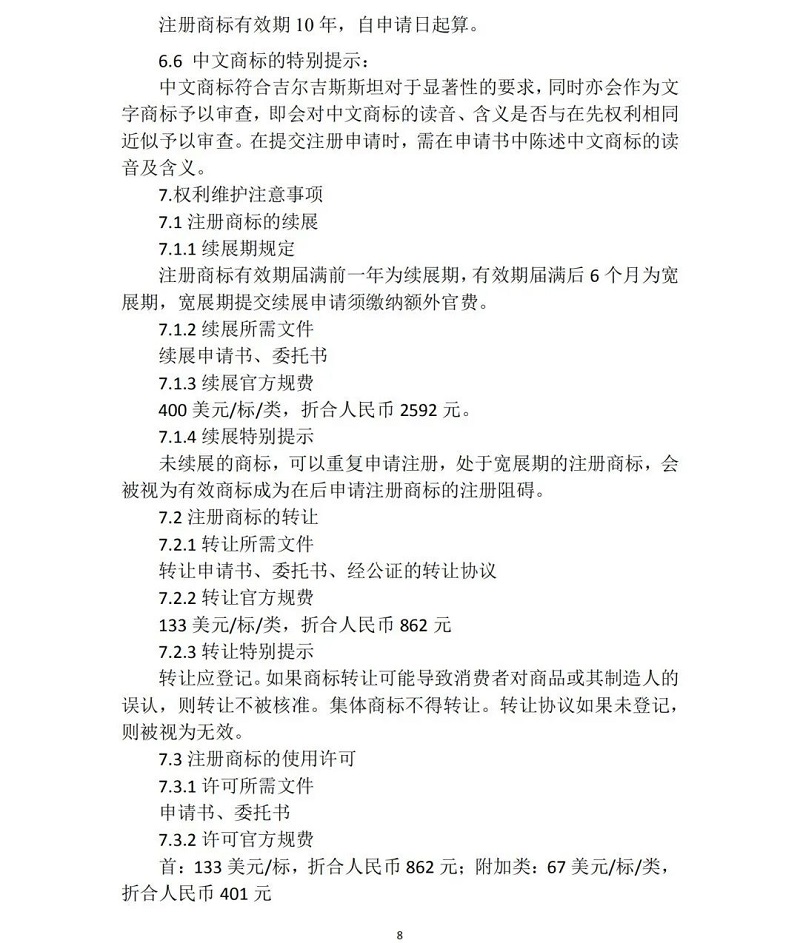 “一带一路”主要国家商标注册和维权流程介绍 (吉尔吉斯斯坦)