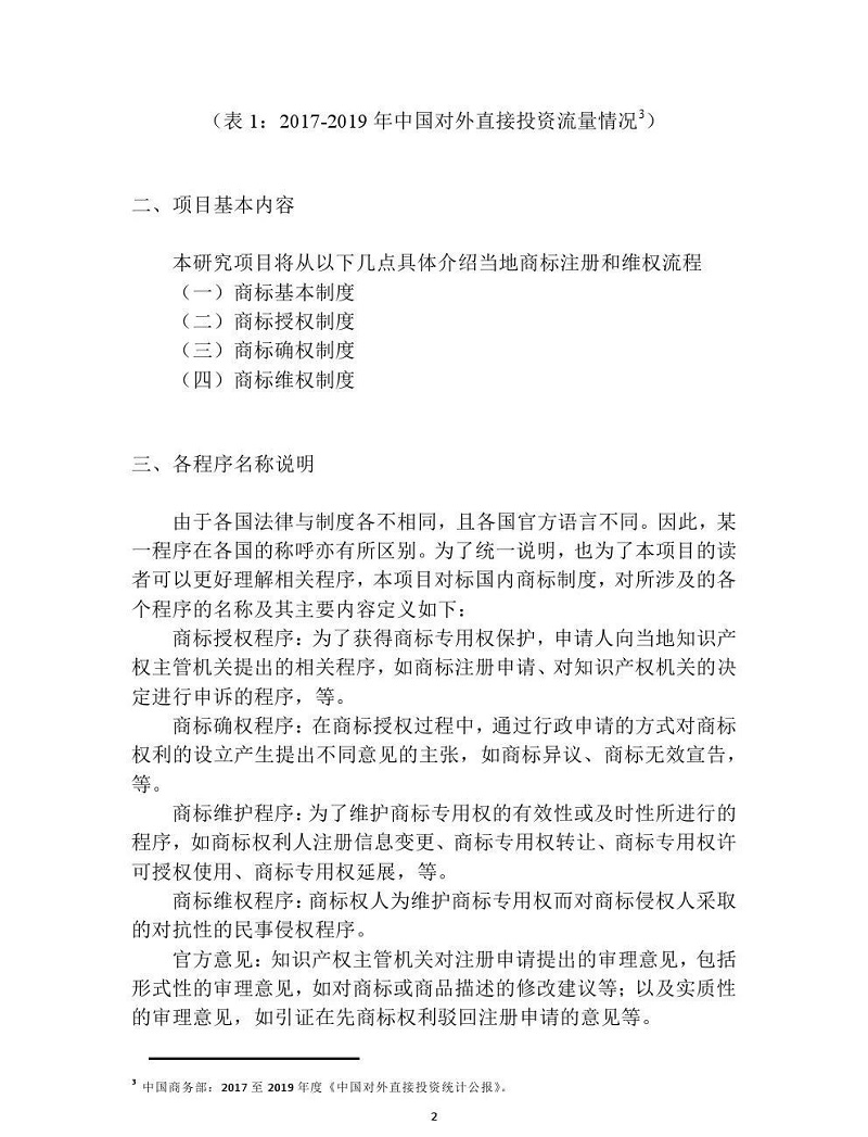 为帮助我国企业在“一带一路”沿线国家的贸易中提前布局商标注册、在注册后选择最为恰当的维权手段,避免在境外维权时“水土不服”,国家知识产权局商标局委托北京君策知识产权发展中心组织开展了“一带一路”相关国家中部分国家或地区的商标注册流程、商标维权流程制度领域的课题研究。