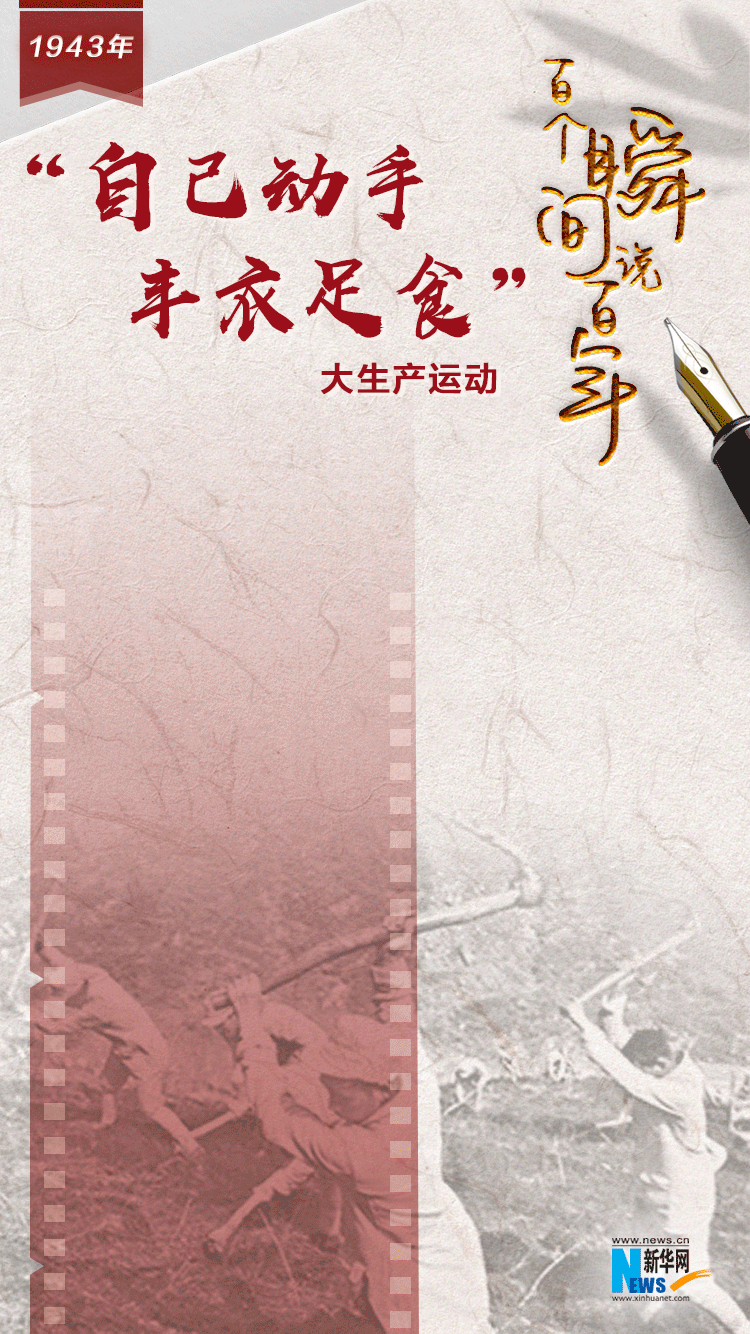 1939年2月,当困难刚刚露头的时候,毛泽东就发出了“自己动手”的号召。1941年,党中央再次强调必须走生产自救的道路。同年春,八路军第三五九旅开进南泥湾实行军垦屯田。战士们用歌声唤醒沉睡的土地,用汗水浇出万顷良田,使昔日荒凉的南泥湾变成了“粮食堆满仓,麦田翻金浪,猪牛羊肥壮”的“陕北的好江南”。到1944年,第三五九旅除吃用全部自给外,达到了“耕一余一”(即耕种一年庄稼,除消耗外,可剩余一年吃的粮食),成为全军大生产运动的模范。一曲动人的《南泥湾》流传至今,久唱不衰。