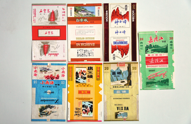 八九十年代,登上烟标的风景名胜就更多了。巫山卷烟厂的“文峰”“巫峡云”“白帝城”,黔江烟厂的“石宝寨”“小南海”“阿蓬江”“万寿山”“梅亭”“赵庄”“钓鱼城”,重庆卷烟厂的“宝顶”“朝天门”,涪陵卷烟厂的“芙蓉江”“芙蓉洞”等……这些烟标非常直观地展现了重庆的自然风光和人文景观。