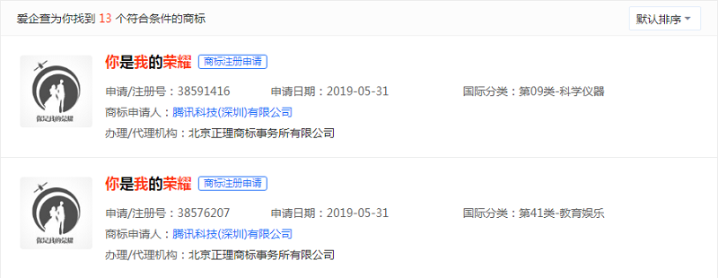 2019年5月31日,腾讯公司重新对“你是我的荣耀”商标图样进行设计,加入了独创设计的“荣耀夫妇”和卫星的图形元素,修改之后的商标因具有显著性,目前已经获准注册。