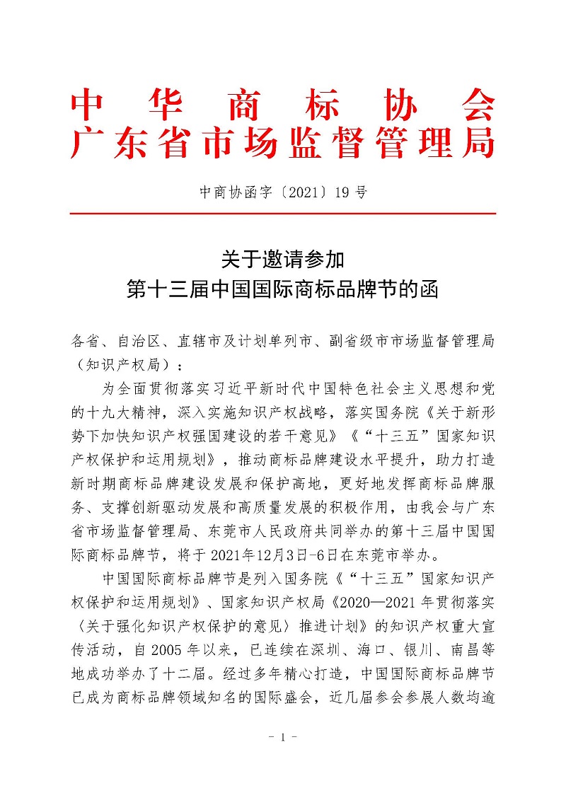 关于邀请参加第十三届中国国际商标品牌节的函,(公职人员邀请函)