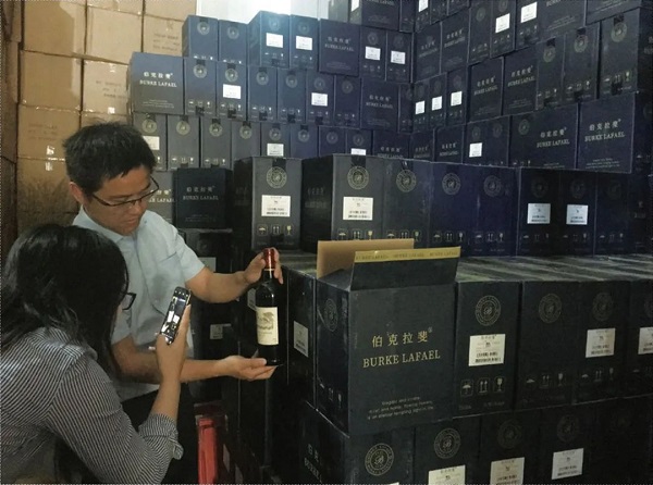 2019年4月25日,浦东新区知识产权局接到成都市市场监督管理局线索告知,上海菲桐贸易有限公司在成都举办的第100届全国糖酒商品交易会上展出涉嫌侵犯波尔多葡萄酒行业联合委员会“BORDEAUX”注册商标(地理标志集体商标)专用权的葡萄酒。虽然该商标侵权纠纷现场经过调解,以下架了结,但办案人员凭着高度的责任感和职业敏感度,认为当事人很有可能还存在侵权行为。遂对当事人位于浦东新区惠南镇的住所地址,及松江区泗泾镇的实际经营地、松江区九亭大街的仓储地进行全面彻查,发现了当事人涉嫌生产销售侵权红酒的违法事实,并扣押涉嫌侵权的标有“BURKE LAFAEL BORDEAUX 2007”“伯克拉斐干红葡萄酒”字样的葡萄酒657箱、标有“BURKE LAFAEL BORDEAUX 2010”“伯克拉斐干红葡萄酒”字样的葡萄酒699箱、标有“BURKE LAFAEL BORDEAUX 2015”“伯克拉斐干红葡萄酒”字样的葡萄酒252箱(共计1608箱)。