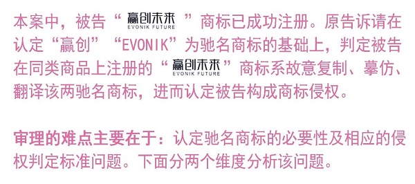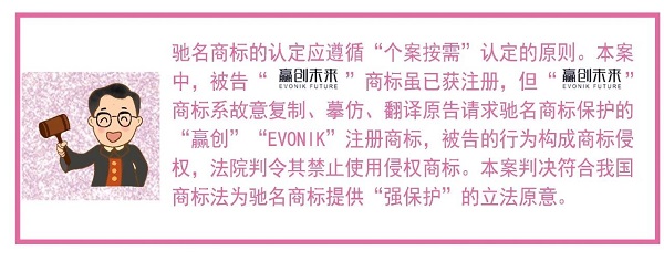 ”商标虽已注册,但该注册商标系复制、摹仿原告在先注册的驰名商标,导致消费者混淆、误认,故请求法院在认定“赢创”“EVONIK”两商标为驰名商标的基础上,判定被告构成侵权,并判令被告禁用“