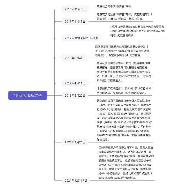 “陈麻花”的商标诉讼纠纷,从申请商标的无效宣告到案件提审判决历经4年。