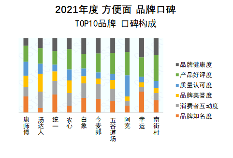 综合来看,2021年度方便面TOP10品牌的口碑构成如下图所示: