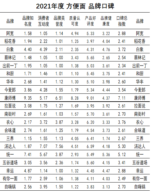 2022年3月2日,中国品牌口碑指数 2021年度方便面口碑报告(以下简称《报告》)在京发布。
