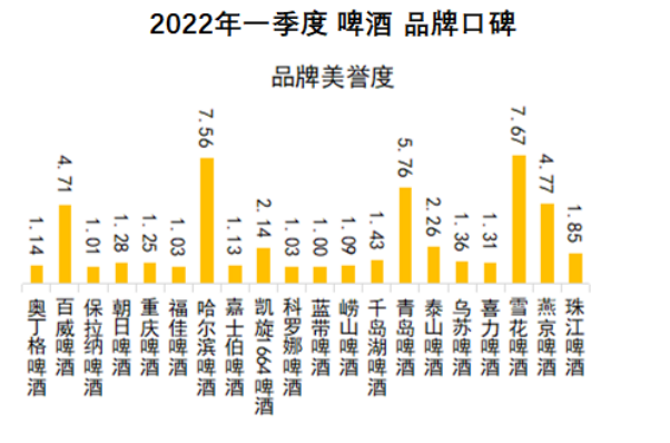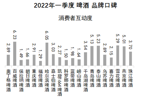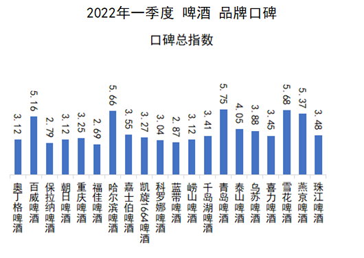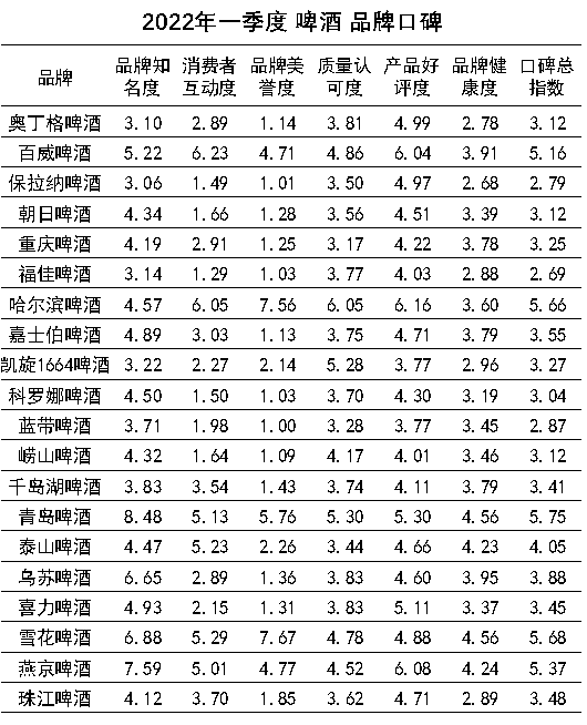 2022年3月31日,中国品牌口碑指数:2022年一季度啤酒品牌口碑报告(以下简称《报告》)在京发布。