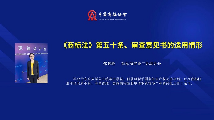 第七期,审查三处副处长郜慧敏分别从法条的历史沿革、立法本意、主要变化、具体适用等方面详细解读了指南中关于商标法第五十条及审查意见书的规定。