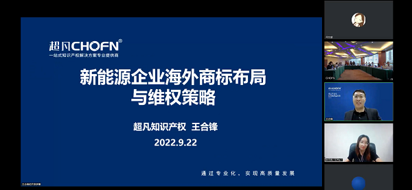 2022年9月22日,由中华商标协会商标海外维权工作委员会(以下简称“委员会”)主办、委员会主任委员单位超凡知识产权服务股份有限公司(以下简称“超凡知识产权”)承办的“新能源企业海外商标布局及维权策略”研讨会以线下、线上相结合的形式成功举办。
