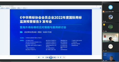 2月24日,由中华商标协会商标海外维权工作委员会主办的《中华商标协会会员企业2022年度国际商标监测预警报告》发布会暨海外商标维权应对策略与案例研讨会在线上成功举办。国家知识产权局知识产权保护司综合业务处副处长许谅亮,中华商标协会秘书长吴东平,中国社会科学院法学研究所研究员、中华商标协会海外维权工作委员会专家委员李顺德,美的集团高级知识产权顾问王明红,快手集团商标总监娄丽出席了此次活动。活动由中华商标协会海外维权工作委员会主任委员单位代表王合锋主持。