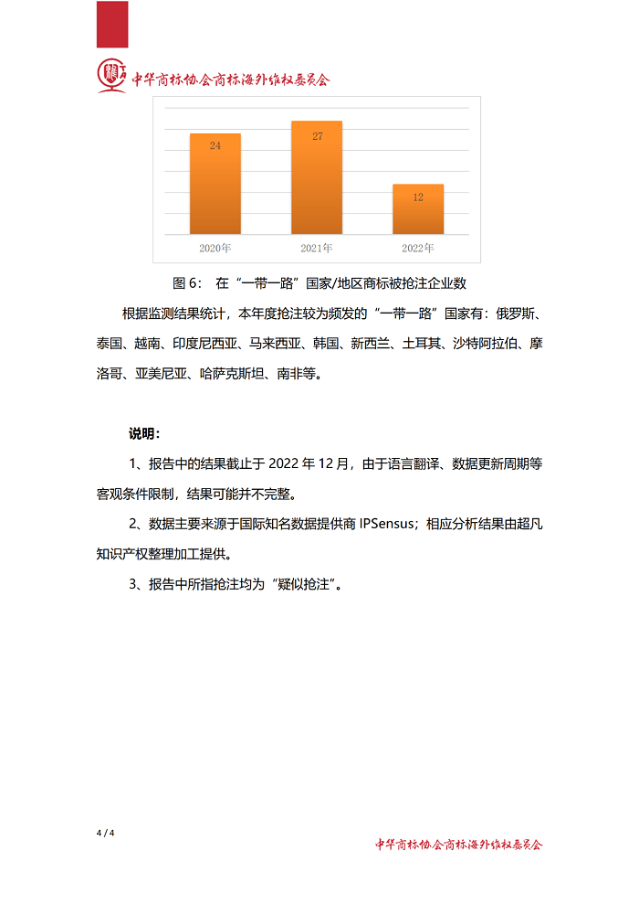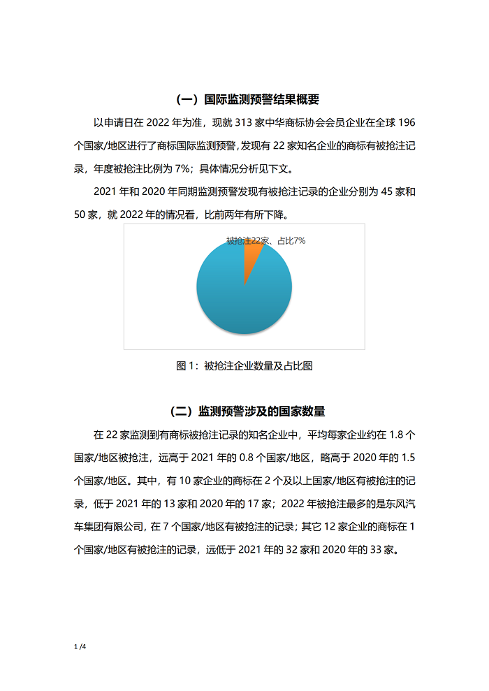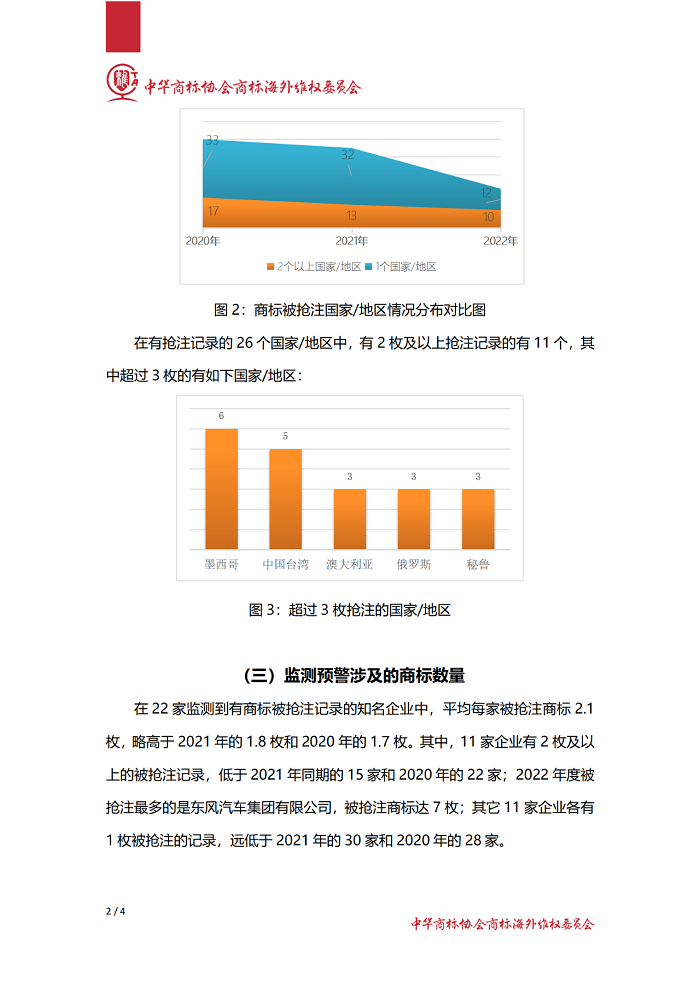中华商标协会会员企业2022年度国际商标监测预警报告