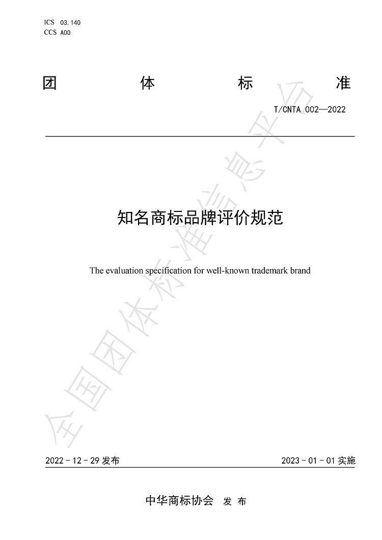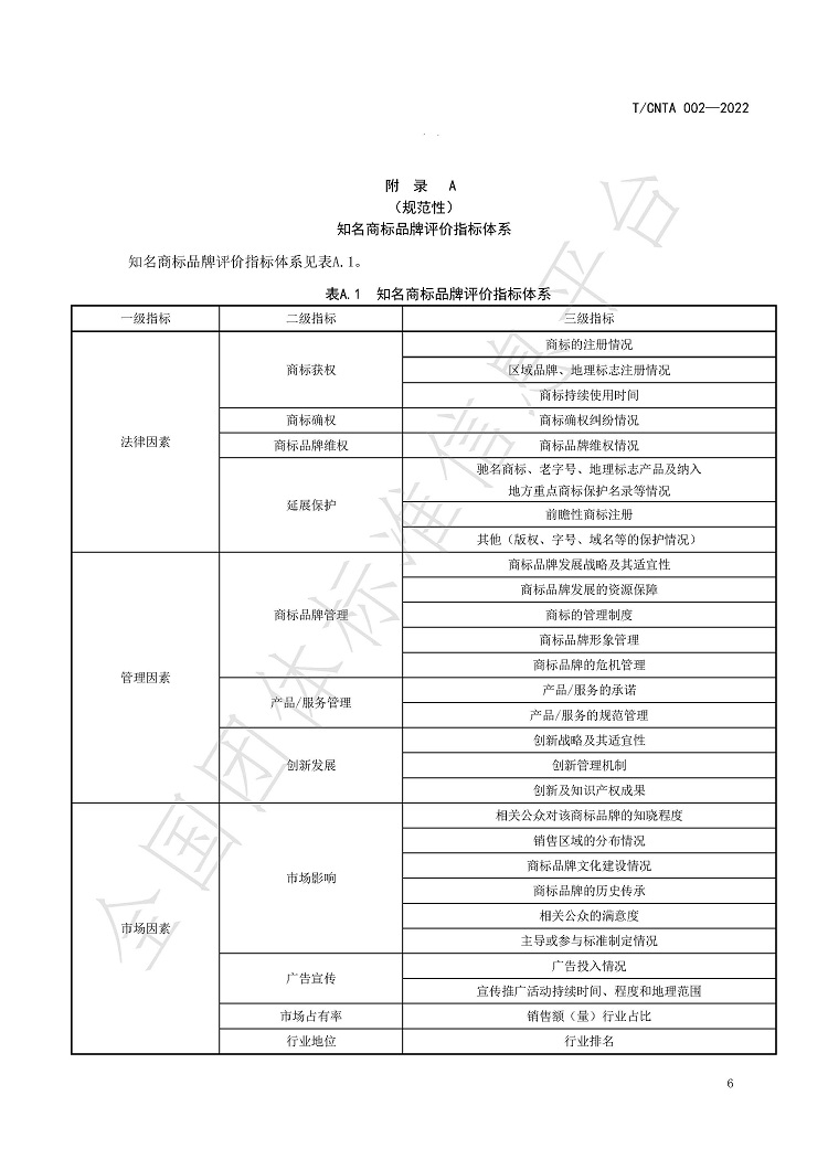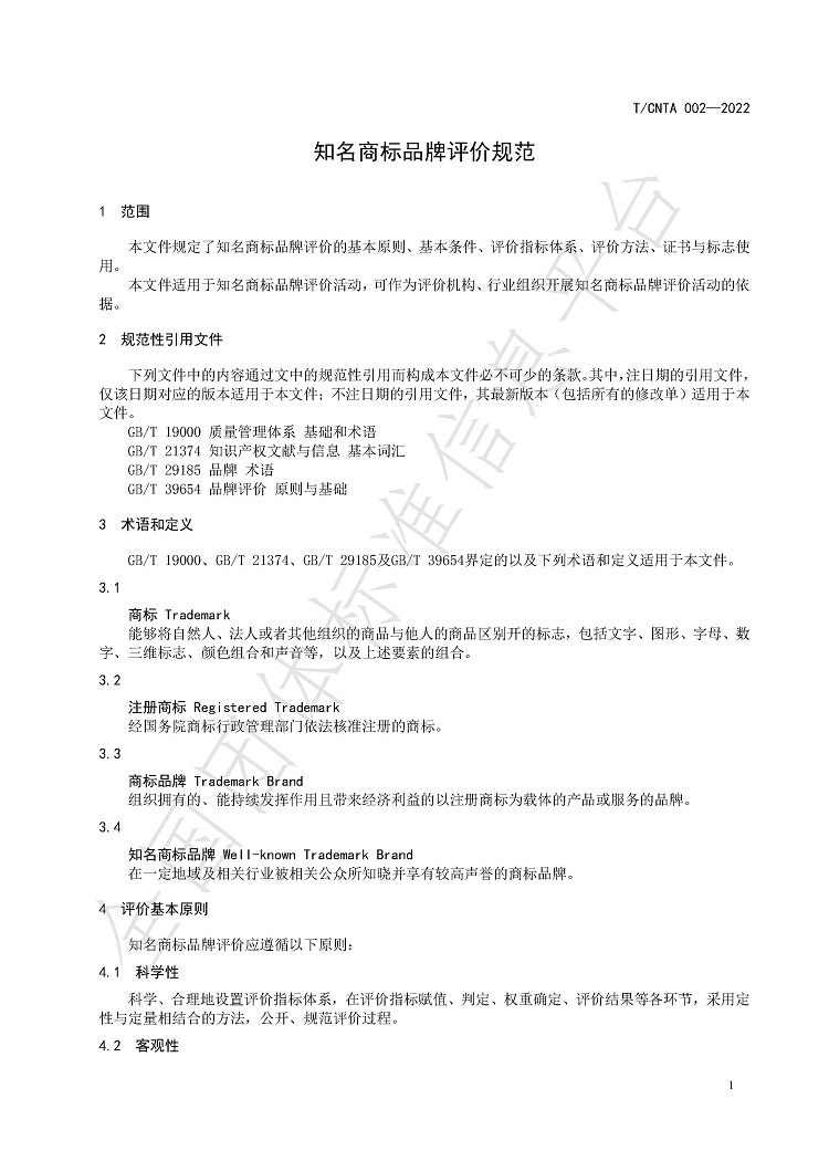 T-CNTA 002-2022 知名商标品牌评价规范