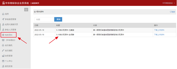 如授课老师愿意分享课件,相关课件将上传至中华商标协会会员系统“相关资料”栏,供下载。(见下图)
